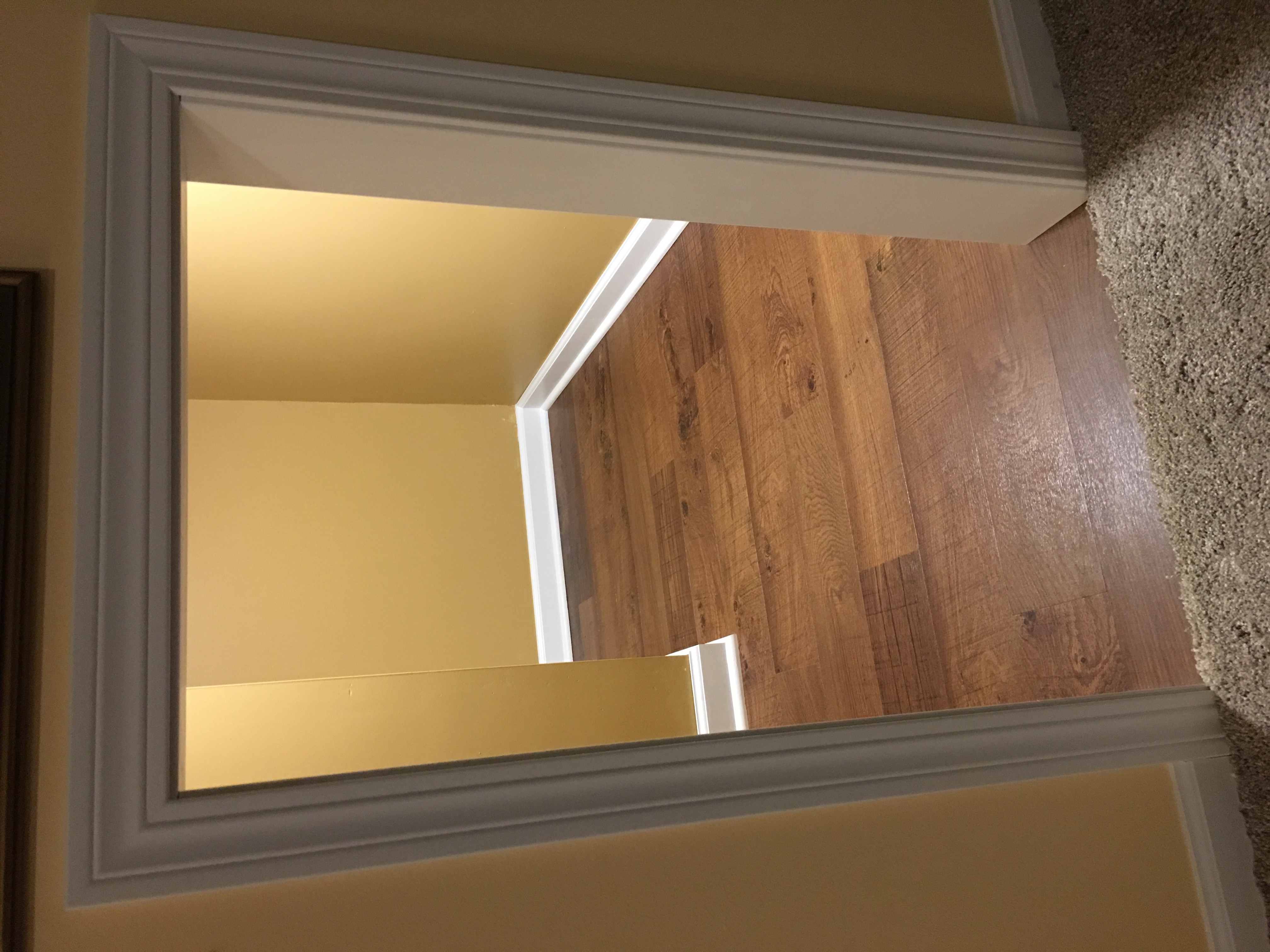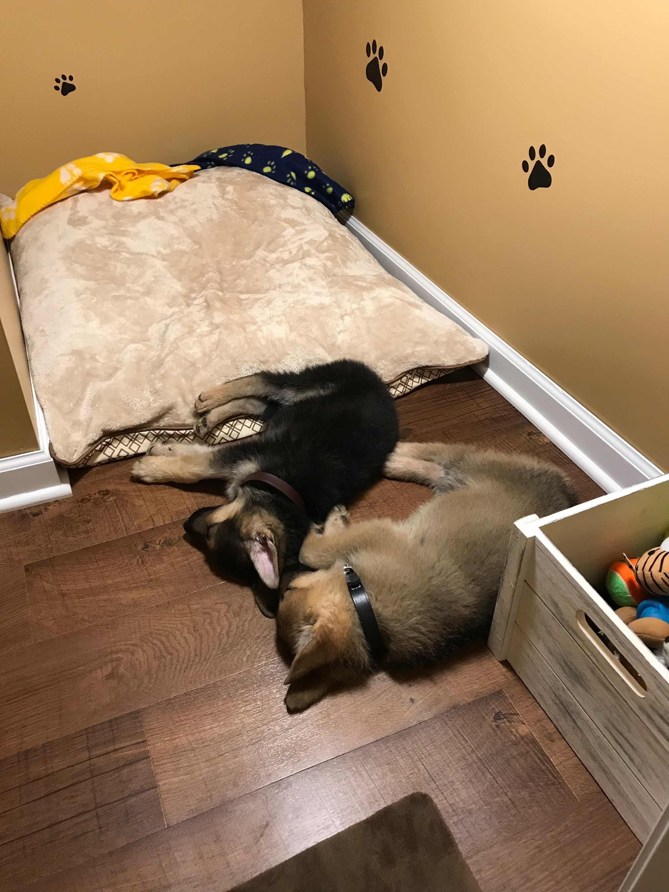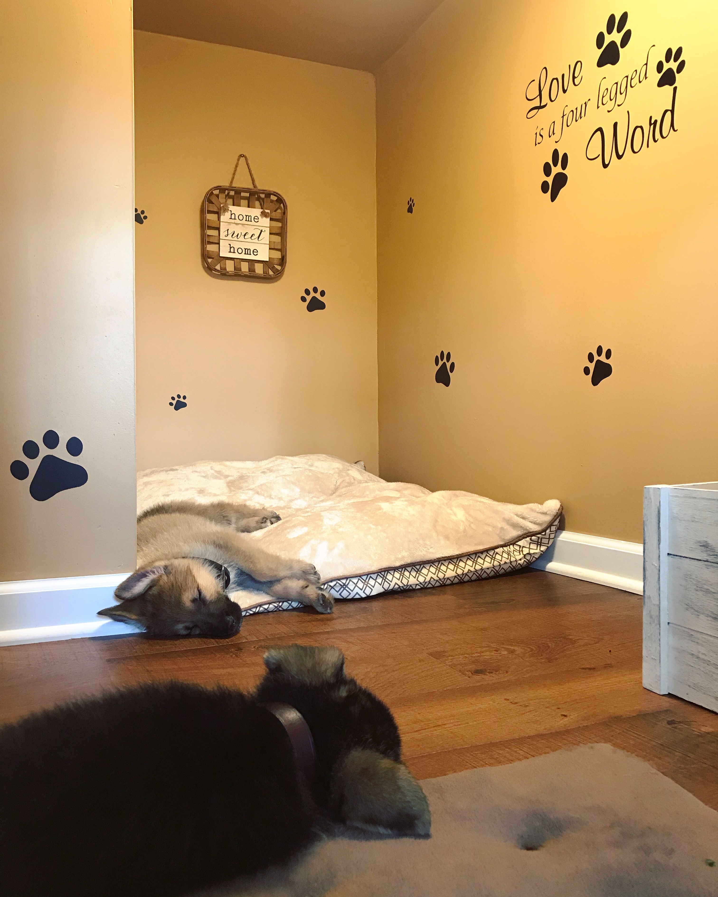 Crawlspace under stairs converted into dog den